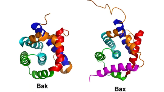 BAX主要以潜在单体的形式存在于细胞质中,但在细胞应激时,BAX与BH3-only蛋白结合后,会发生构象激活和转位,转化为可渗透线粒体的寡聚蛋白。此外,BAX还在线粒体膜上形成小孔时,会从线粒体膜中提取脂质,并在线粒体表面形成脂质-BAX簇,这一过程与细胞死亡密切相关。